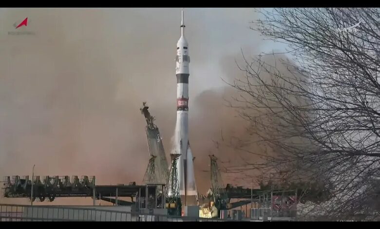 این سه فضانورد در ساعت ۴:۲۷ صبح به وقت منطقه زمانی شرقی از پایگاه فضایی بایکونور در قزاقستان راهی مقصد شدند و قرار است حدود سه ساعت بعد به ماژول خدماتی «زوزدا»(Zvezda) متصل شوند.